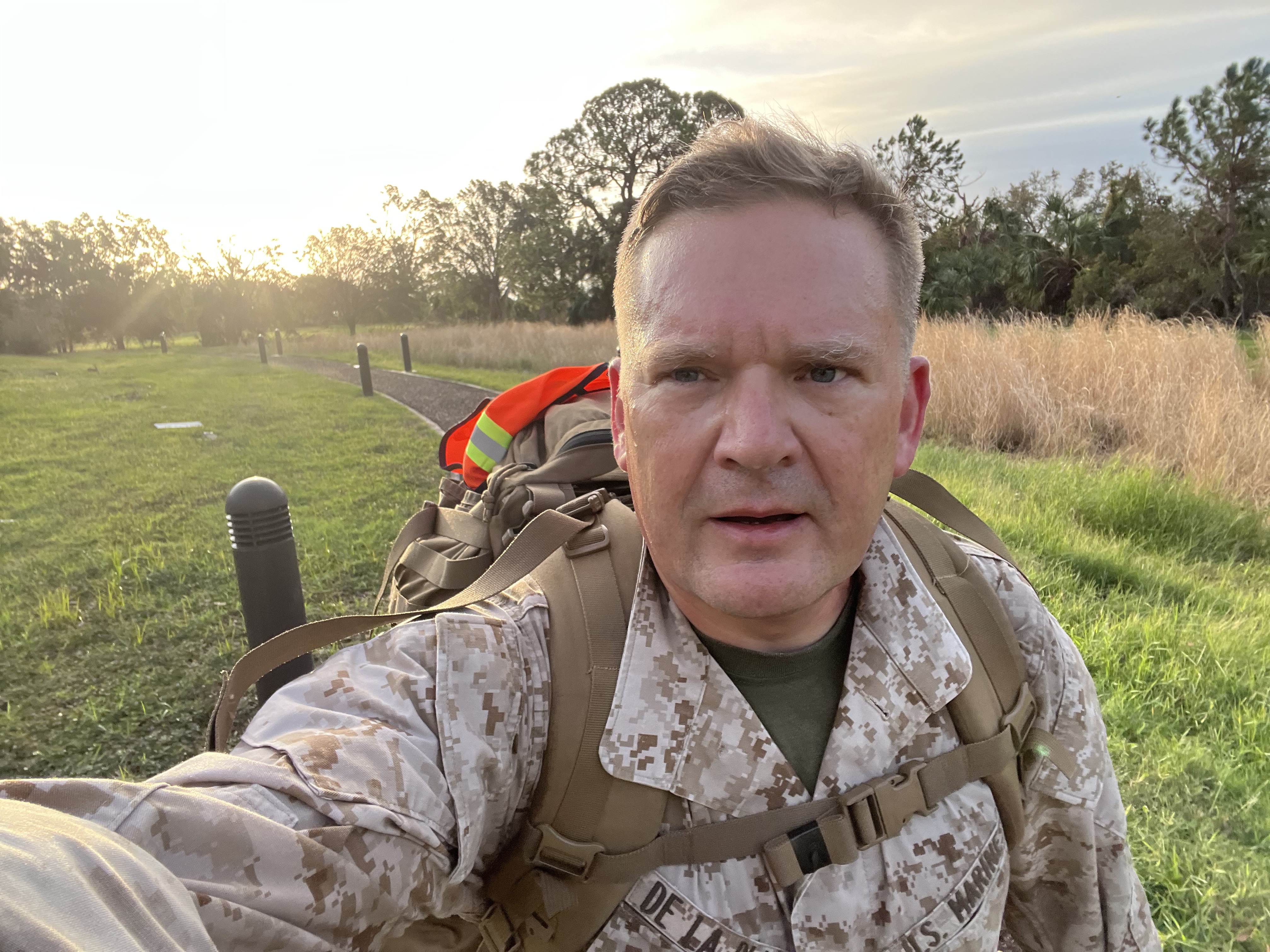 The final event was a 12-mile ruck in under four hours. The previous Saturday, I had completed ten miles in two hours and thirty minutes, so I was confident I would succeed. I woke at 0440 and limped downstairs to don my desert MARPAT uniform and Danner Reckoning boots. A bit out of uniform, I rolled up my sleeves twice, revealing my smartwatch on one wrist and my Strenuous Life motto wristband on the other that reminded me: DO HARD THINGS.